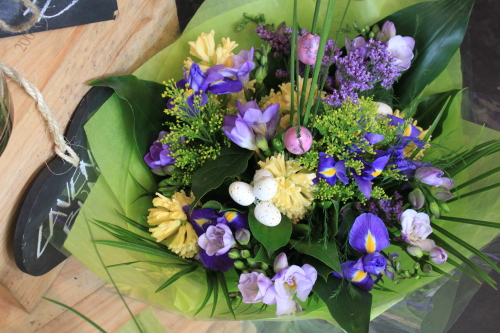 Note: Thanks to the talented Lynda from Flowers by Lynda (www.flowersbylynda.ie) for letting me take pictures of her Easter flowers and Easter herbal window boxes.