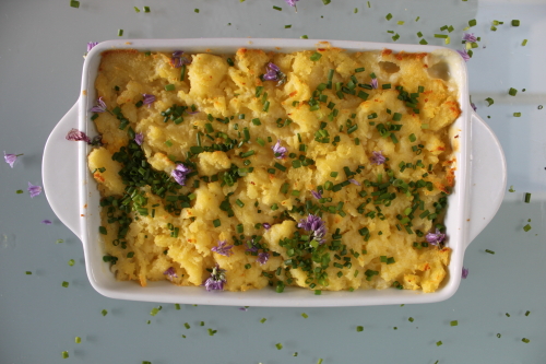 For Easter Saturday supper I had one of my favourite dishes – fish pie. I don’t stick to a recipe when I make it. I usually use salmon, smoked haddock, fluffy prawns, chopped hard-boiled bound together in a white sauce and topped with mashed potatoes made with an obscene amount of butter.