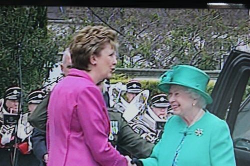 Note; the very blurry image above was shot from my television screen (RTE’s coverage of the Queen’s state visit to Ireland).