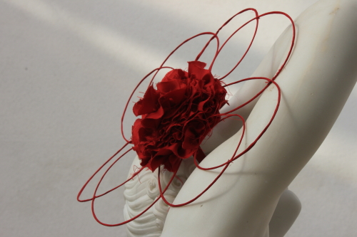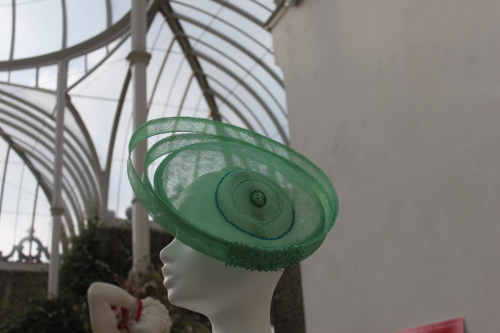 When Sarah finished school she did a secretarial course and then worked for nine years as a PA in industry.  She was always looking for ways to fulfil her creative urge and attended many evening classes in different disciplines; in her time she has made jewellery, handbags, mosaics, cosmetics, and candles.  Her light bulb moment came when she a did a 20 week evening class in millinery at the Grafton Academy, she knew she had found what she wanted to do, she was really excited by the class and says going to it made her heart beat faster.  When she had finished the millinery evening classes she went to work with Irish milliner Jacinta Fahy (getting the work there took dogged determination).  She learned a huge amount from Jacinta and Sarah describes it as her favourite year so far.  When Jacinta was retiring she offered Sarah the opportunity to buy the business but Sarah felt she wasn’t ready to take it on and applied instead to do a degree in the NCAD.  After graduating she did an internship with Stephen Jones in London and a postgraduate course in millinery at the Kensington and Chelsea College.