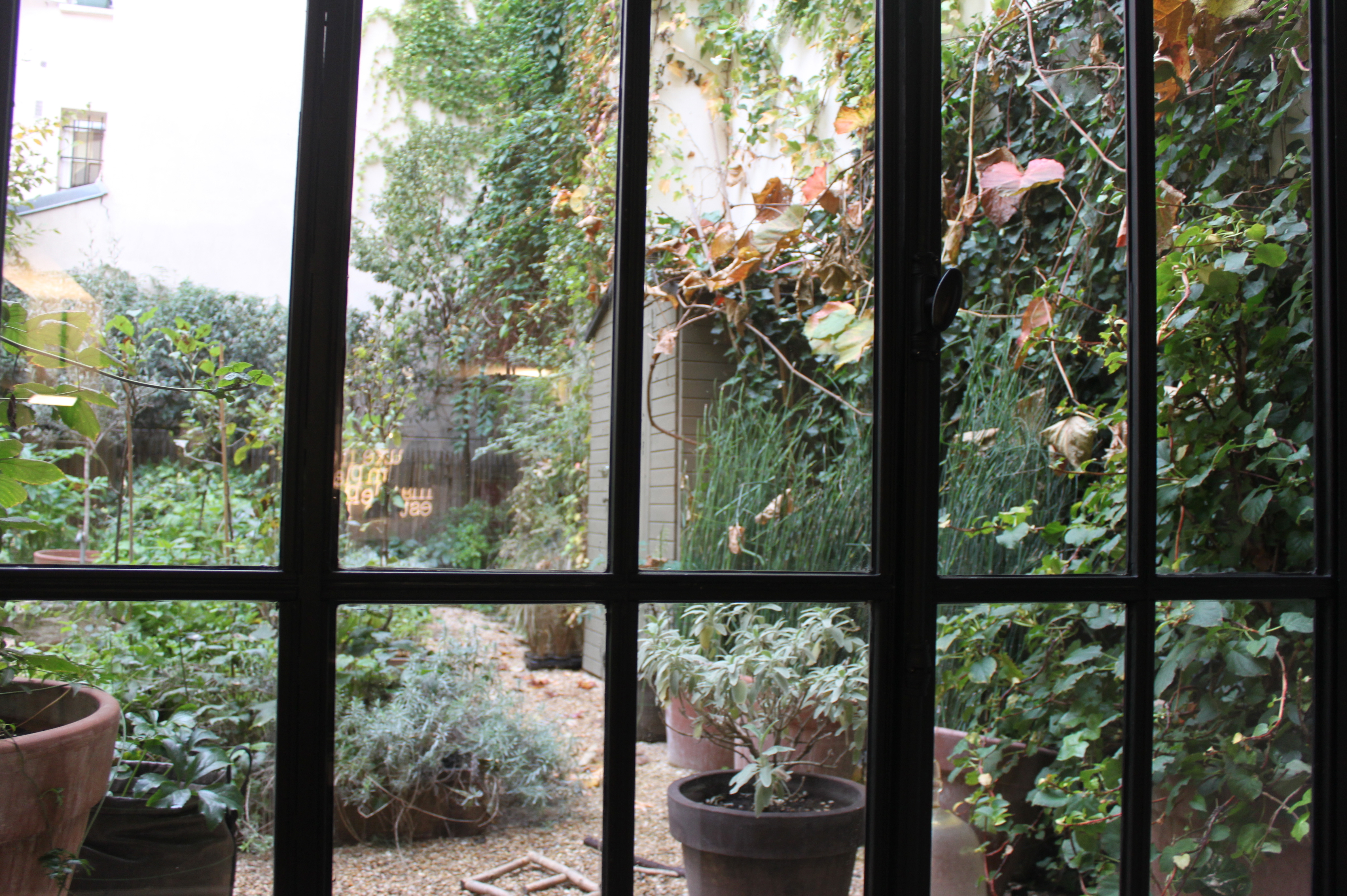 On my recent trip to Paris I had lunch in La Cantine du Potager the restaurant in Merci’s basement.  It’s exactly the sort of restaurant I love to eat in, as it’s at the same time stylish and totally unpretentious.  The walls are pale and the space is filled with dark as night chairs surrounding long black tables overhung with large industrial lights.  Splashes of colour come from the crates of fruit sitting on a ledge and fairy lights in primary colours strung over one of the tables.  There are big windows overlooking a courtyard garden so the restaurant is light filled and there is no feeling of being hemmed in.