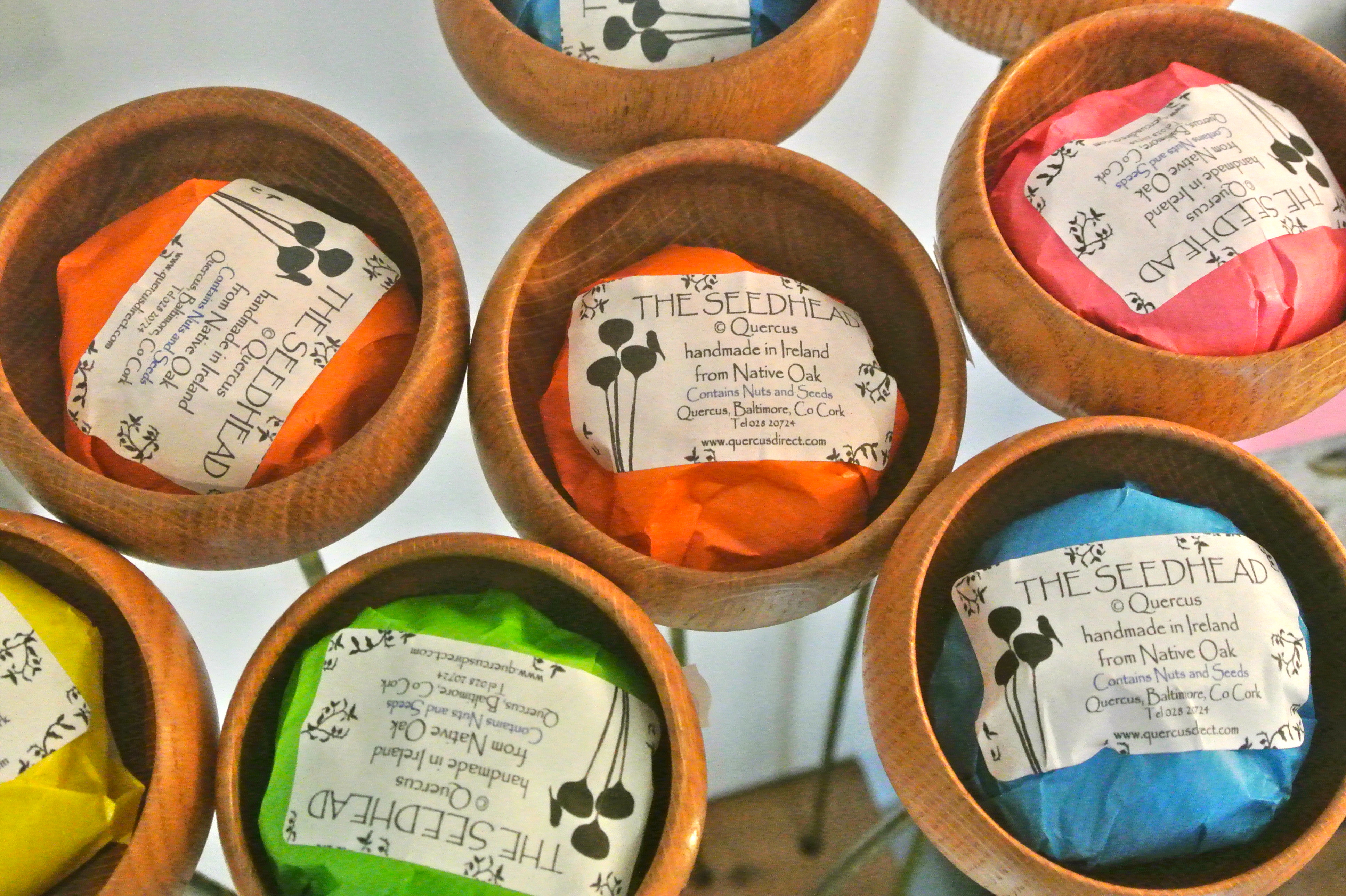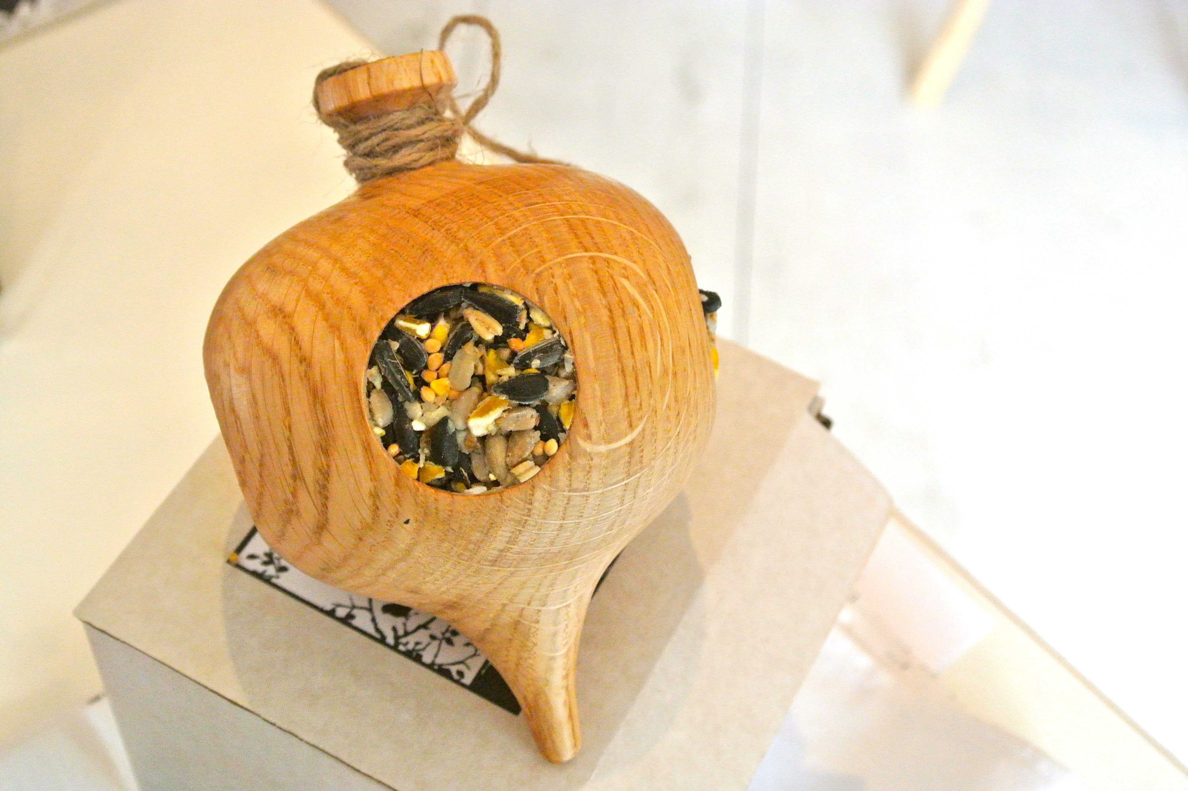 Bird feeders: the seedpod (for hanging from branches) and seedhead (for sticking in flower beds or pots) bird feeders are hand turned in native Irish oak.  They are made by small company called Quercus based in Cork and are an aesthetically pleasing alternative to the ubiquitous metal and plastic feeders.  The price of a seedpod is €32 and a seedhead is €20. They are somewhat cheaper if you buy them directly from Quercus (www.quercusdirect.com) but unfortunately the last day to place orders online, for a guaranteed Christmas delivery, has passed.