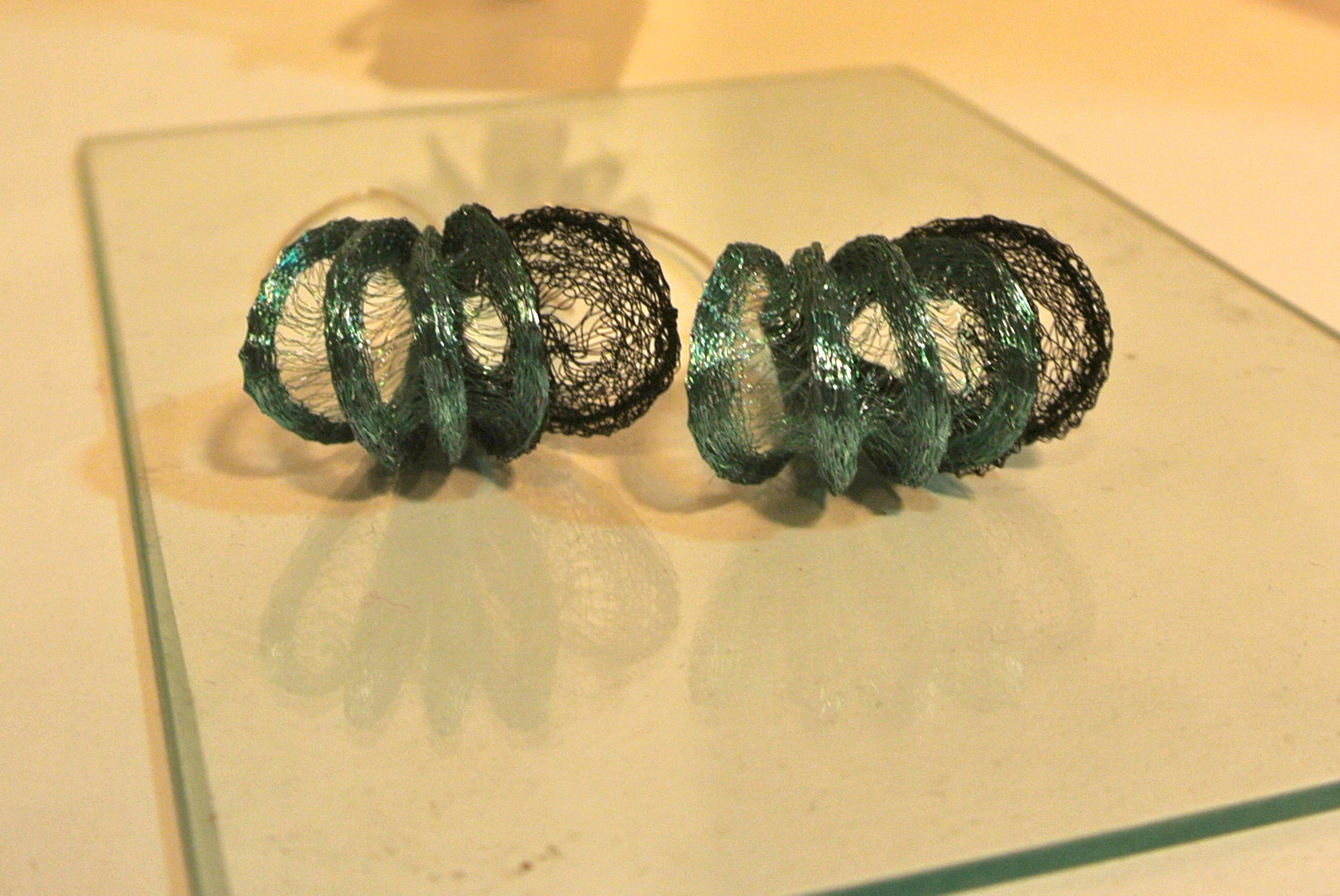 Jewellery designed by Vivienne Martin: Vivienne was highly commended in the Jewellery Category (that’s effectively joint second place). Vivienne graduated with a first class honours degree in textile design from the Galway/Mayo Institute of Technology in 2009. She uses a mix of synthetic ribbon, mesh and wire to fashion her innovative, intricate and striking designs. (www.risecreatives.com/viviennemartin or viviennemarting@gmail.com).