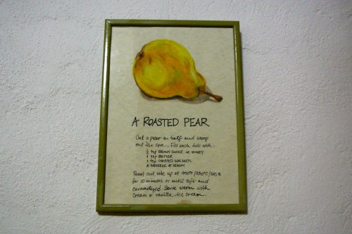 2. What a beautiful place! I love the bottles too…and the roasted pear illustration.