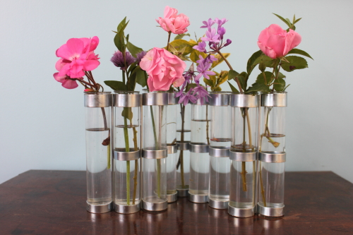 Vase d’Avril: The vase is a series of glass test tubes which slot into connected zinc covered steel holders. It comes in two sizes small and large, mine’s the small one and what you see in the picture is just a portion of it, as the whole thing is more than double that length with twenty-one glass cylinders. You can use it whole, in pieces, or even just one tube. Empty it’s not especially pretty but it’s totally transformed by adding a few flowers and bits of greenery. It cheers up a corner of a room, without the need to indulge in bank-balance-busting-buying of bunches of flowers. The Vase d’Avril is by Tsé & Tsé Associées, a small French design company.