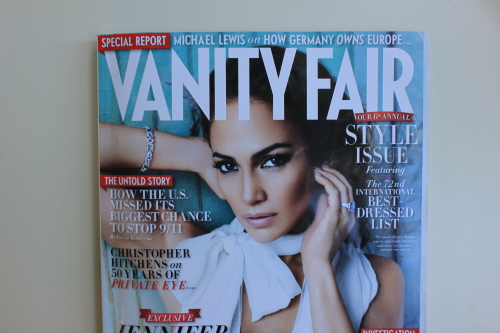 I don’t often buy Vanity Fair, not because it isn’t an excellent magazine with well researched, informative articles as well as a slew of pictures by talented photographers but because if I were to cave into to my desire to buy all the magazines I like, I would live surrounded by leaning tower of Pisa-likes-stacks of old magazines.